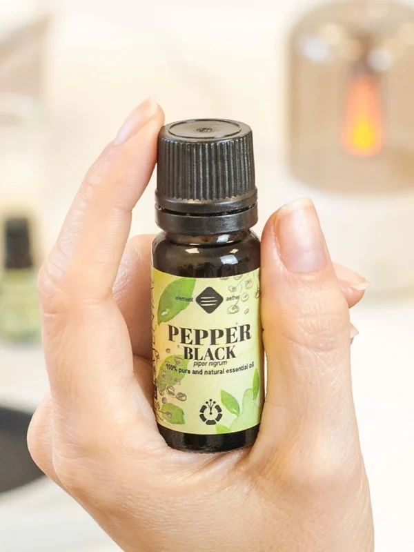 Esenciálny olej z čierneho korenia (Piper nigrum) má teplú, korenistú a jemne drevitú vôňu, ktorá okamžite povzbudzuje telo aj myseľ 🌶️✨
