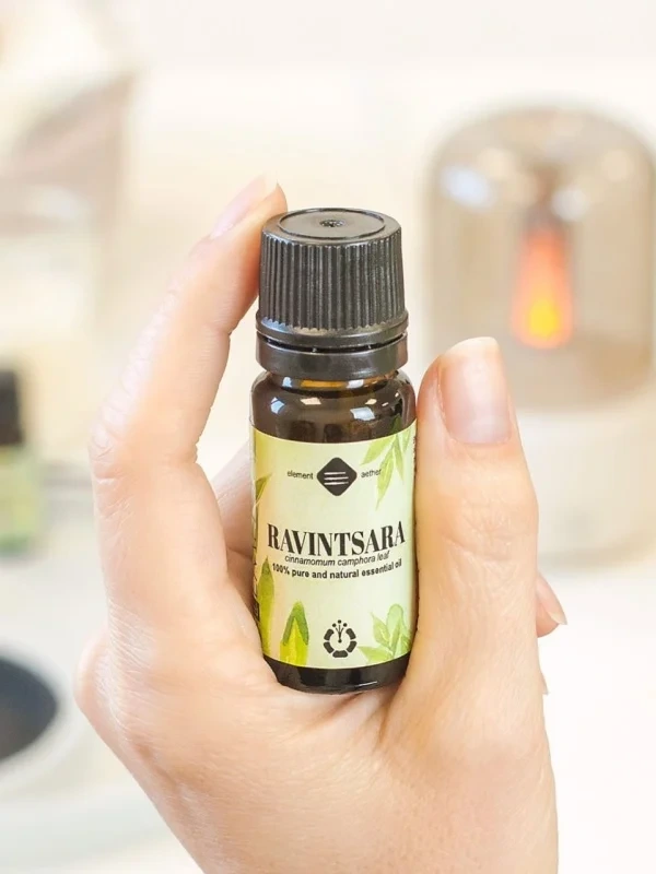 V aromaterapii je Ravintsara cenená najmä pre svoje prečisťujúce, povzbudzujúce a harmonizujúce účinky. Je obľúbenou súčasťou difúznych zmesí na osvieženie vzduchu, podporu komfortu dýchania a vytvorenie čistého, sviežeho prostredia doma.